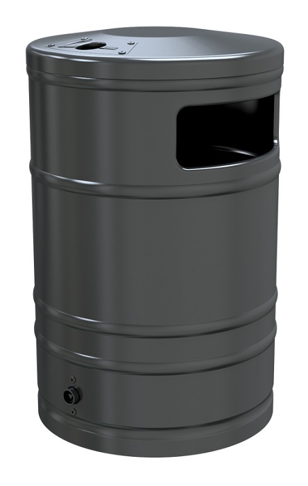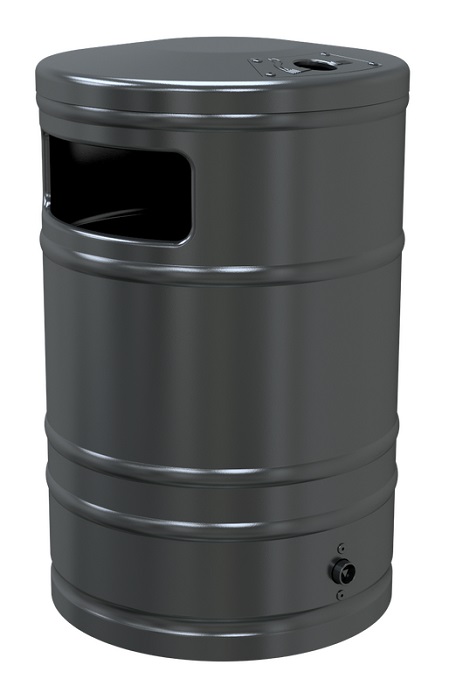 Auch dieser Abfallbehälter hat eine verschließbare Bodenklappe, durch die eine schnelle und saubere Entleerung möglich ist. Zum Einwerfen des Abfalls hat er zwei seitliche Einwurf Öffnungen.