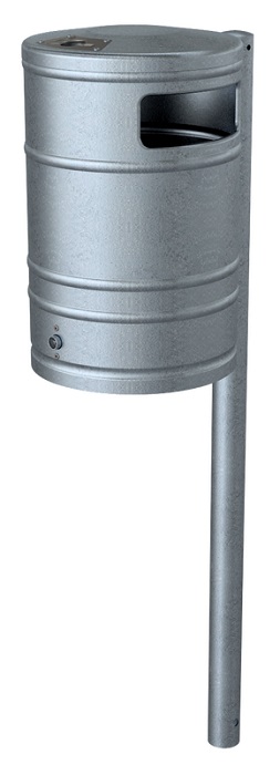 Er ist für eine Wandbefestigung oder eine Pfostenbefestigung erhältlich. Bei der Wandbefestigung wird er komplett mit Befestigungsschiene und Schlüssel geliefert, bei der Pfostenbefestigung ist der Abfallsammler montiert mit Standpfosten Ø 60 x 1300 mm.