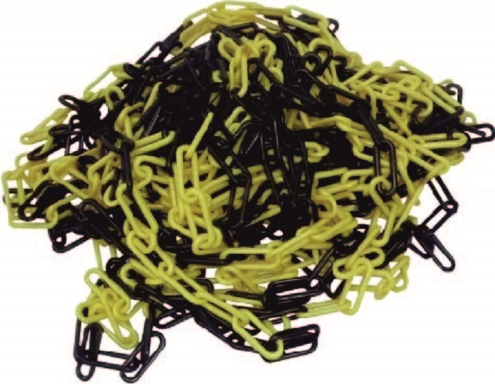 Absperrkette aus Kunststoff in den Farben Gelb Schwarz.