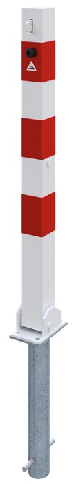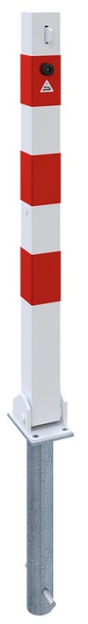 Für maximale Einsatzflexibilität ist der Absperrpfosten wahlweise für Dübelbefestigung mit Bodenplatte 100 x 150 x 6 mm oder zum Einbetonieren mit Bodenhülse (im Lieferumfang enthalten) erhältlich. Die feuerverzinkte Oberfläche bietet zuverlässigen Korrosionsschutz und macht den Pfosten für den Innen- und Außenbereich geeignet. Optional ist eine weiß beschichtete Ausführung mit drei rot reflektierenden Leuchtstreifen verfügbar, die eine erhöhte Sichtbarkeit und zuverlässige Sicherheit gewährleistet.