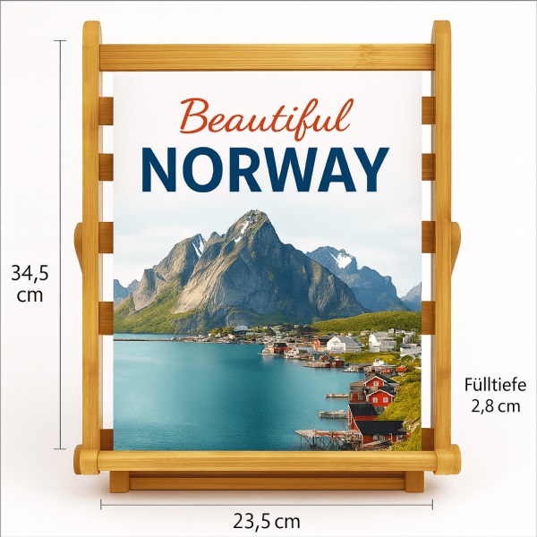 Das natürliche Bambus-Holz sorgt für eine warme und hochwertige Optik und unterstreicht einen nachhaltigen Auftritt. Dadurch eignet sich der Prospektständer perfekt für Messe, Empfangsbereiche, Büros, Showrooms oder den Point of Sale.