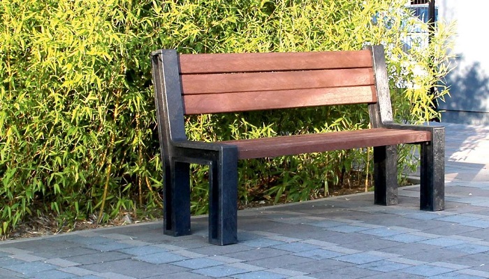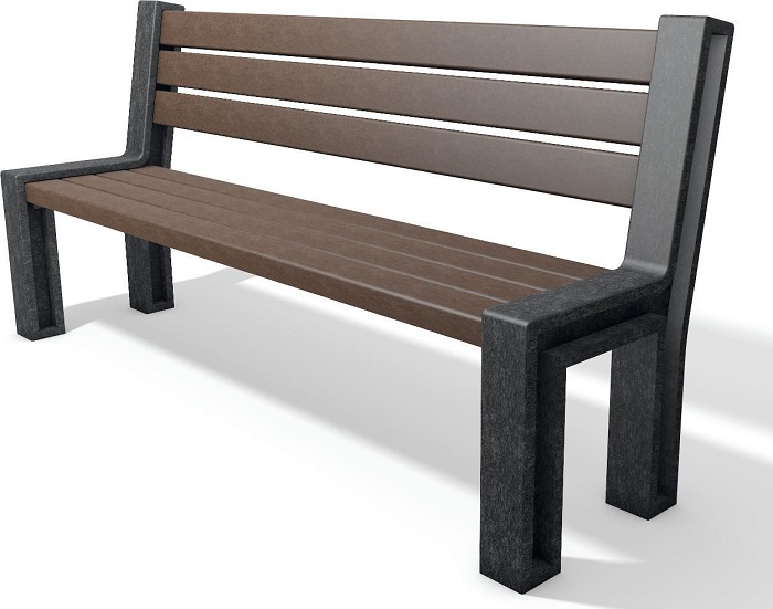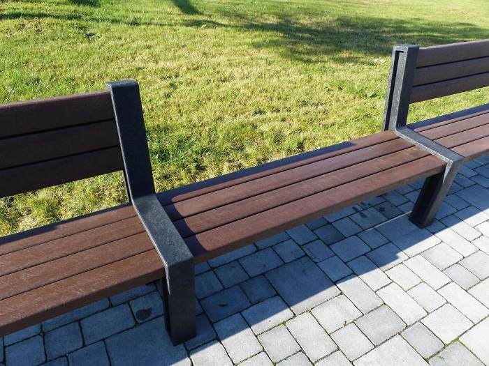 Die Bank Hyde Park aus Recycling Kunststoff unterscheidet sich von anderen Parkbänken durch ihre moderne, frische Form und ihre geradlinige Silhouette.