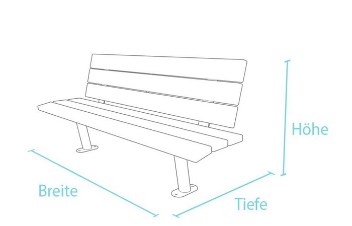 Da die Unterkonstruktion auf nur zwei Standbeine reduziert ist und das Rückenteil gegenüber der Sitzfläche leicht verkürzt ist, erscheint die Stadtbank in modernem, elegantem Design.