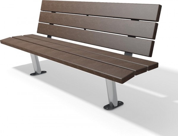 Die Belattung der Sitzbank besteht aus langlebigem, wartungsfreiem Recycling Kunststoff. (Vollmaterial) Die Füße bzw. das Untergestell aus verzinktem Stahl.