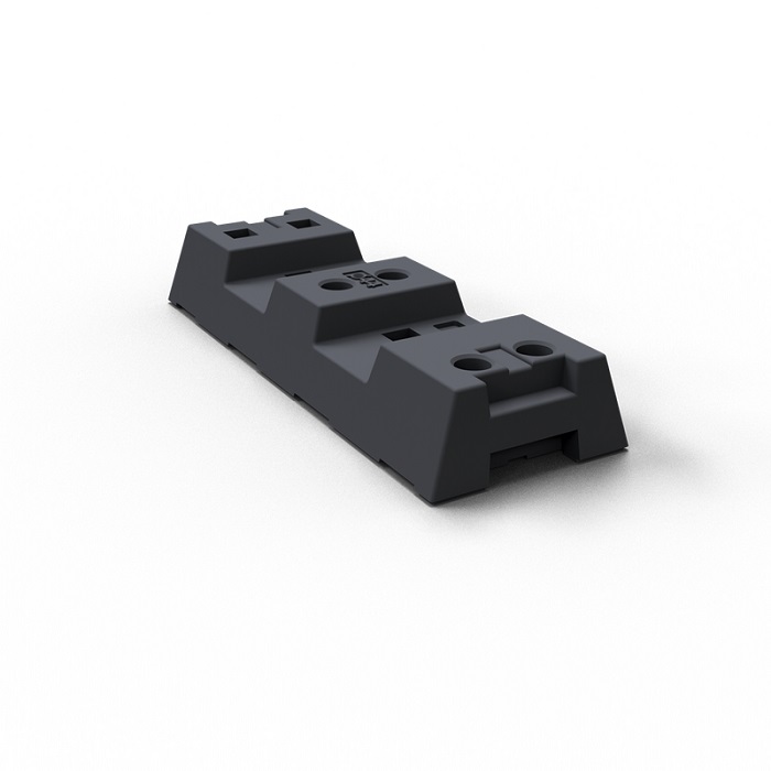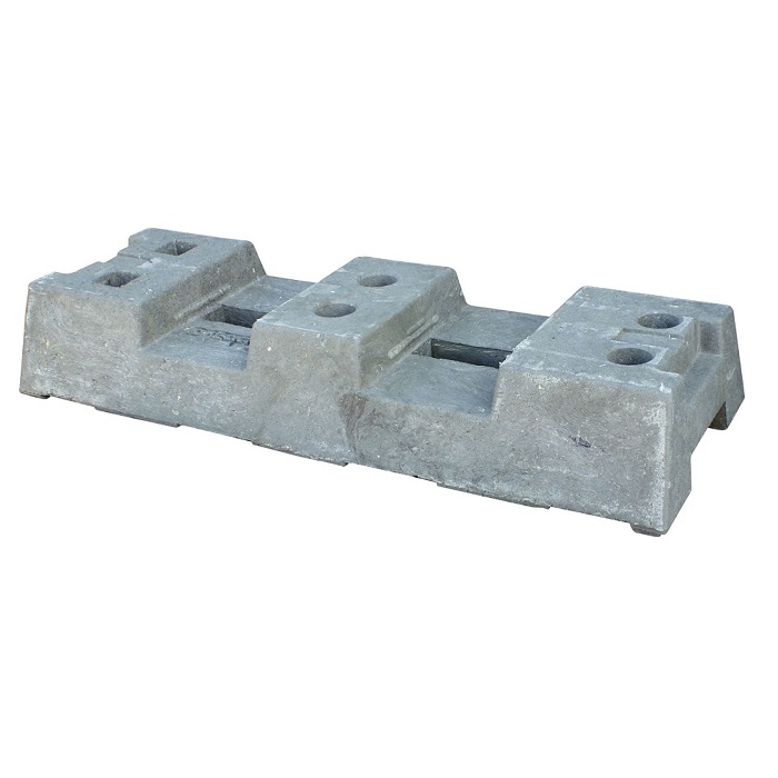 Bauzaun Fuß mit 800 mm Länge aus Recycling Kunststoff. Das Eigengewicht des Bauzaunfußes beträgt 16 kg. Er ist eine leichtere, aber flächenmäßig größere Alternative unserer Bauzaunfüße.