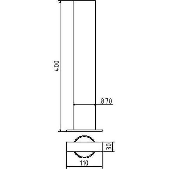 Länge 400 mm als Zubehör für Absperrpfosten mit Bodenteil Ø 60 mm ohne Verschluss. Der Innendurchmesser der Bodenhülse beträgt Ø 64 mm.
