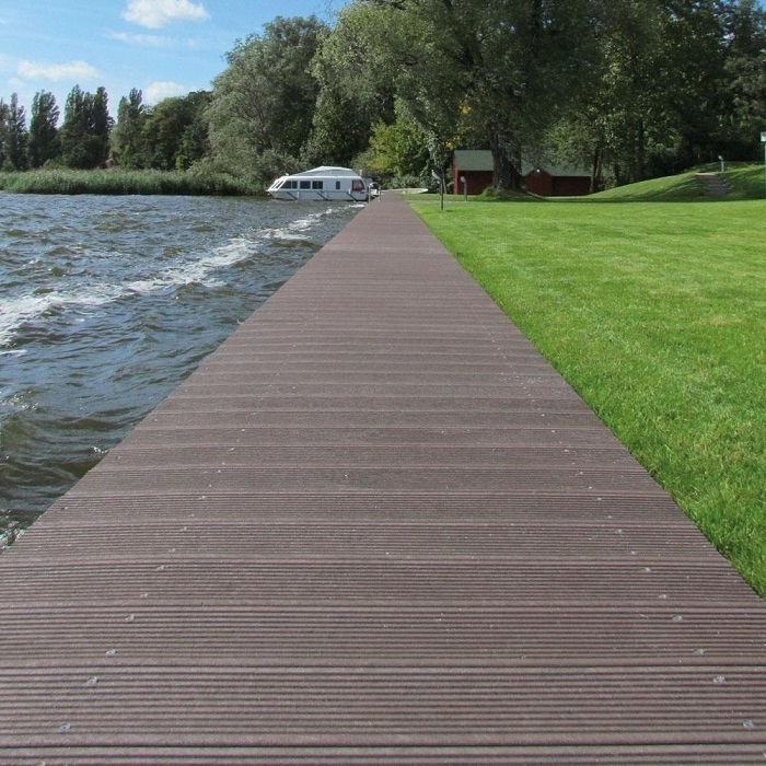 Hier rutscht nichts, es verrottet nichts! Optisch steht die Stegbohle aus Recycling Kunststoff der Bohle aus Holz nichts nach. Der Vorteil ist, die Stegbohlen sind völlig wartungsfrei, kein Streichen, Lackieren oder Schleifen. Die Stegbohlen sind feuchtigkeitsabweisend, splitterfrei, ohne schädliche Imprägnier Stoffe, rutschhemmend durch ein Rillenprofil und einfach zu verarbeiten. Sie sind auch am Seewasser einsetzbar.