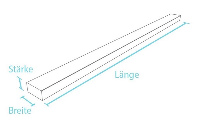 Brett in den Abmaßen 2 x 20 x 200 cm oder 3 x 20 x 300 cm.