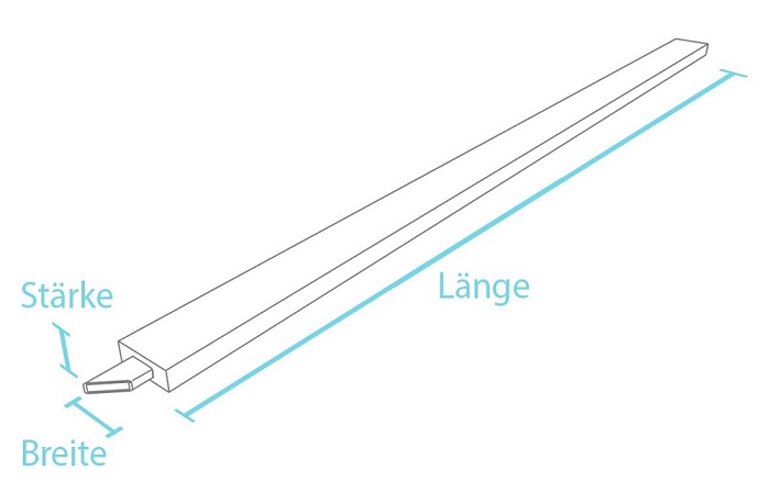 Die Länge der Kunststoffbretter beträgt 250 cm. Eine Kürzung wird aufgrund der innenliegenden Armierung nicht empfohlen.