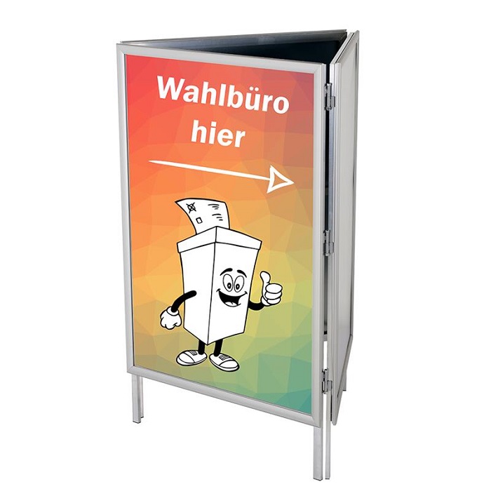 Der mobile Dreieck Plakatständer ist die ideale Lösung für allseitig sichtbare Werbung und Promotion.