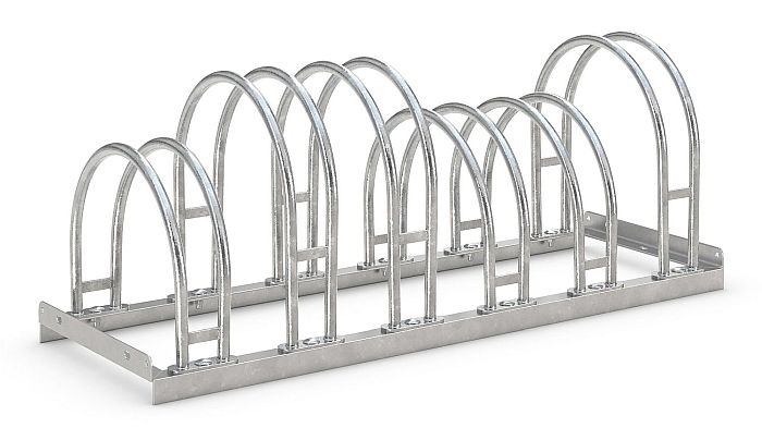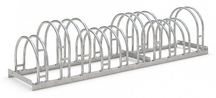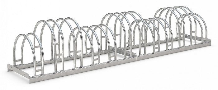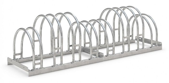 Der Fahrrad Reihenparker besteht aus einer stabilen verzinkten Stahlkonstruktion Ø 18mm mit verschraubbaren, bogenförmigen Bügeln aus Rundrohr. Er ist korrosionsgeschützt und wertbeständig durch die Verzinkung.