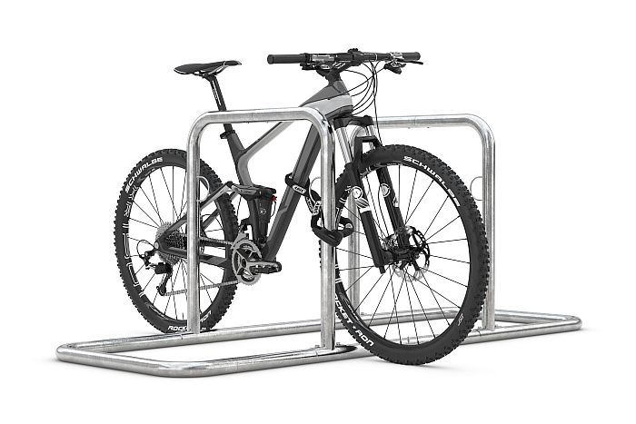 Der Fahrradständer ist raumoptimiert durch beidseitiges Einparken der Fahrräder. Der Abstand zwischen den Anlehnbügeln beträgt 800 mm.