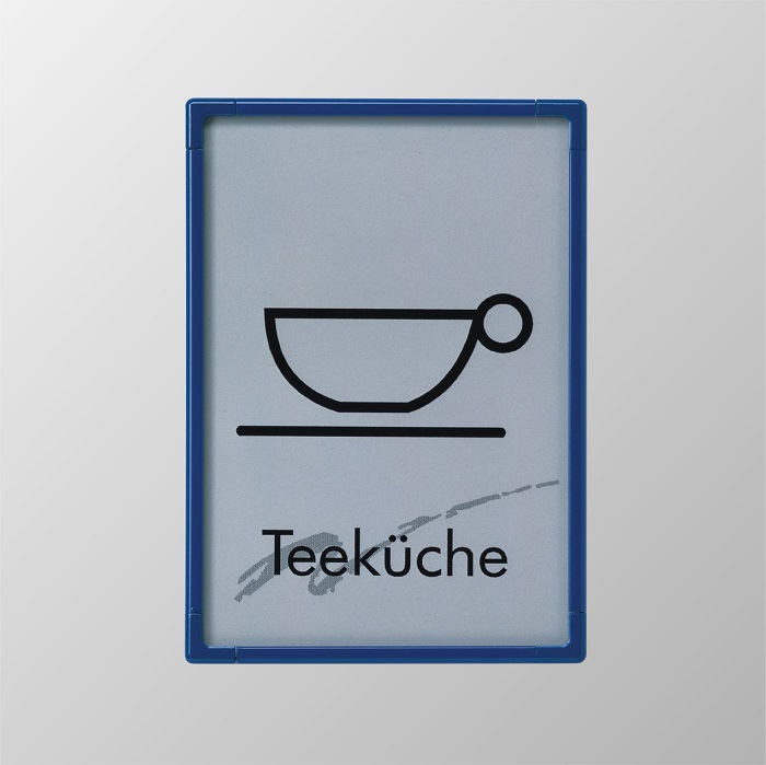 Dank des praktischen Wechselrahmen-Systems lassen sich Inhalte schnell und unkompliziert austauschen: Die Beschriftungsfolie wird einfach eingeschoben. Der Rahmen wird dazu an der oberen Seite geöffnet. Die Grundplatte, die bedruckte Folie und die Verglasung kann herausgenommen werden. Eine Demontage des Hinweisschildes ist dafür nicht notwendig. So bleibt Ihr Türschild jederzeit aktuell und vermittelt stets ein professionelles Image.
