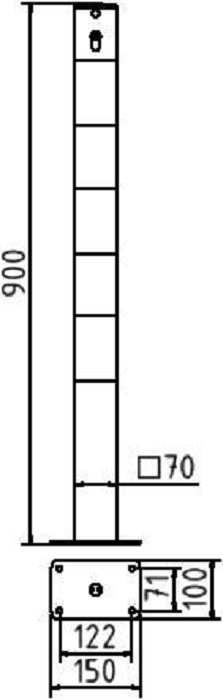 Der Sperrkettenpfosten ist ortsfest, zum Aufdübeln mit Bodenplatte 100 x 150 mm. Sie können diesen Absperrpfosten aber auch an der Bodenhülse Typ 470.60 befestigen. Diese ist dann separat zu bestellen.