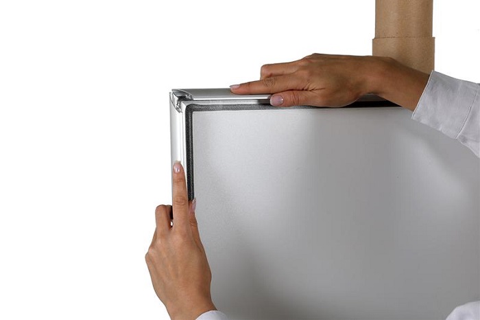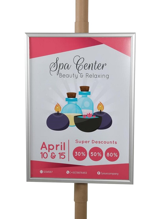 Setzen Sie Ihre Werbebotschaft professionell in Szene mit unserem langlebigem Klapprahmen für Laternenmasten!