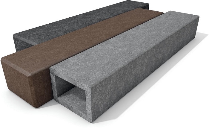 Rechteckige Palisade aus verrottungsfestem, umweltfreundlichem Recycling Kunststoff als Hohlprofil.