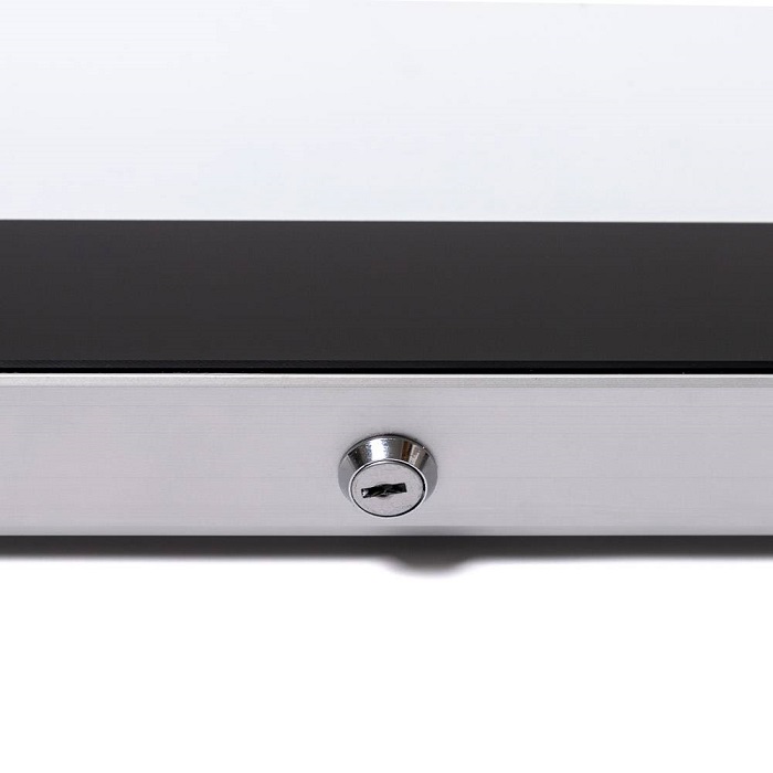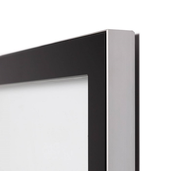 Der Plakatschaukasten überzeugt durch sein modernes, schlankes Erscheinungsbild. Die vordere Glastür mit schwarzem 5,1 cm breitem Keramikdruckrahmen wird durch silberfarbene Seitenteile stilvoll akzentuiert.