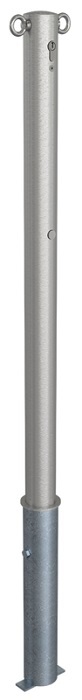 Der Edelstahlpfosten ist rund mit einem Durchmesser von 60 mm. Die Überflurhöhe beträgt ca. 900 mm, während die feuerverzinkte Bodenhülse ca. 400 mm Unterflur eingelassen wird. Alle Varianten verfügen über eine selbsteinrastende Verriegelung, die eine einfache und sichere Handhabung gewährleistet.