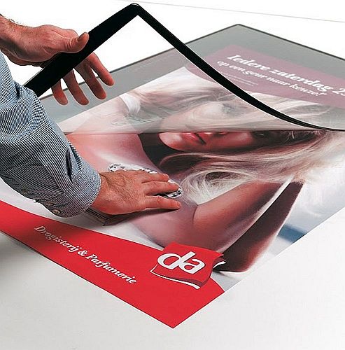 Es ist eine besonders flexible Alternative zu Bodenaufklebern oder Bodenmatten, da Sie Ihre Poster binnen Sekunden wechseln können.