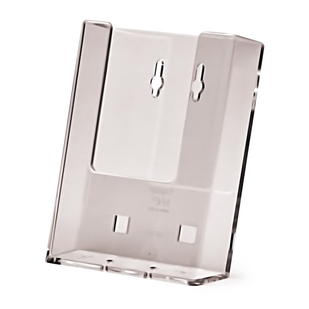 Stabiler, transparenter und widerstandsfähiger Wand Prospekthalter aus Polystyrol im 1/3 DIN A4 Hochformat oder Querformat in den Varianten mit 1 Fach oder 3 Fächern nebeneinander. Dieser transparente Prospekthalter eignet sich durch die Schlüsselbohrungen und seiner sehr hohen Stabilität hervorragend als Wandhalter. Die Prospekthalter können direkt an der Wand befestigt werden.