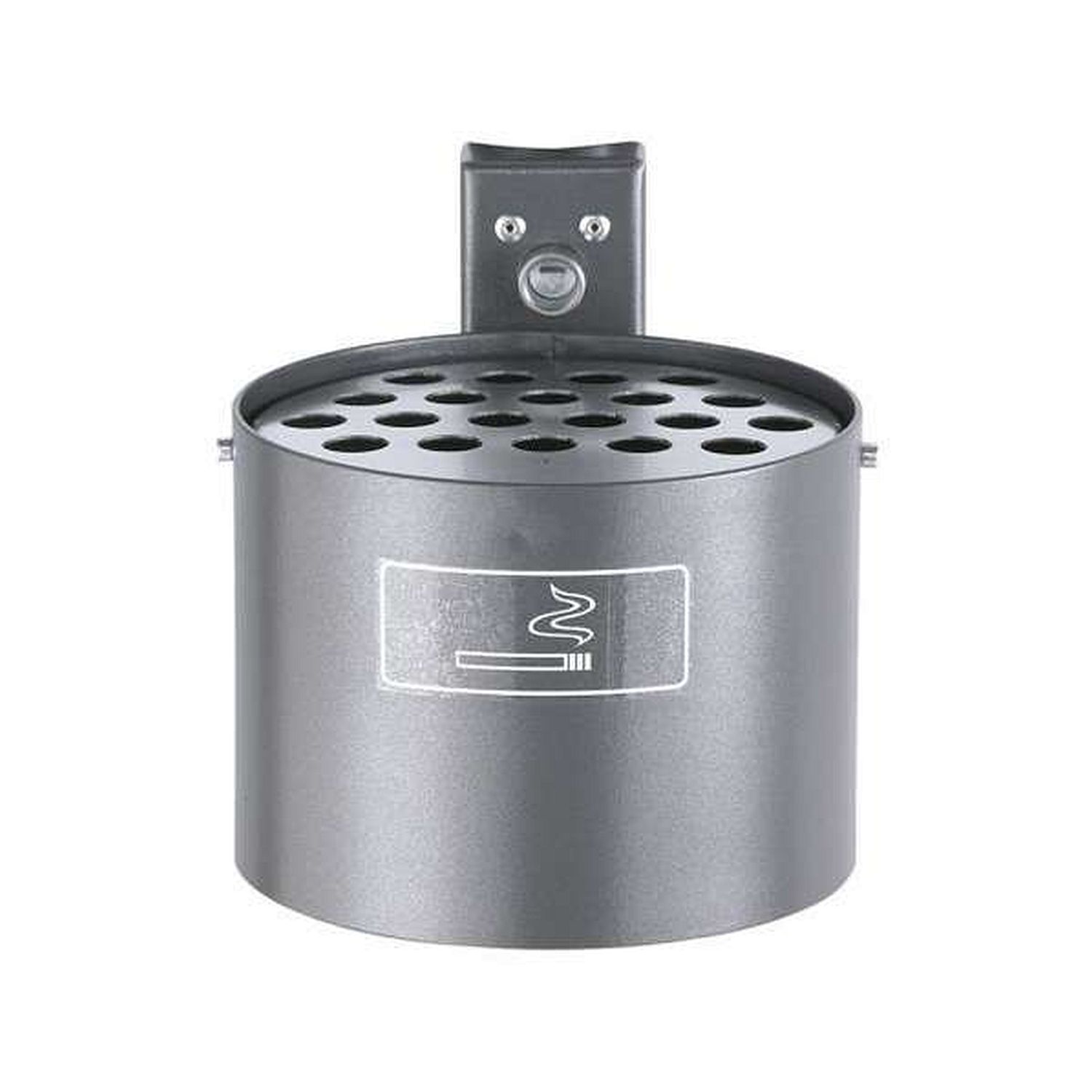 Der Aschenbecher ist in Wandbefestigung oder alternativ mit Pfosten erhältlich.
