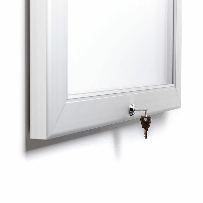 Der abschließbare Schaukasten Alpha mit PETG-Tür überzeugt durch Langlebigkeit, Stabilität und ein hervorragendes Preis-Leistungs-Verhältnis.