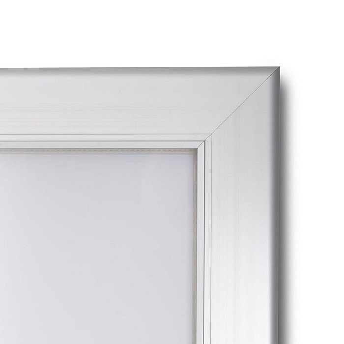 Mit einer Außentiefe von 3,3 cm, einer robusten Profilbreite von 3,7 cm und einer Innentiefe von 1,2 cm ist der Schaukasten kompakt, elegant und zugleich äußerst funktional.