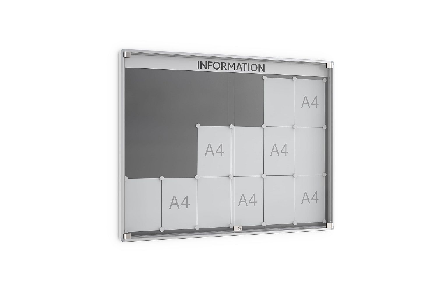 - Nach Öffnen beider Drehtüren Zugriff auf die gesamt Aushangfläche möglich