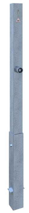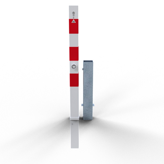 Der herausnehmbare Absperrpfosten besteht aus stabilem 70 x 70 mm Vierkant-Stahlrohr und wird mit eine Bodenhülse Typ 470.10 im Boden verankert. Eine selbsteinrastende Verriegelung sorgt für eine sichere Fixierung des Pfostens. Zum Lieferumfang gehört ein Profilzylinderschloss inklusive drei Schlüsseln.