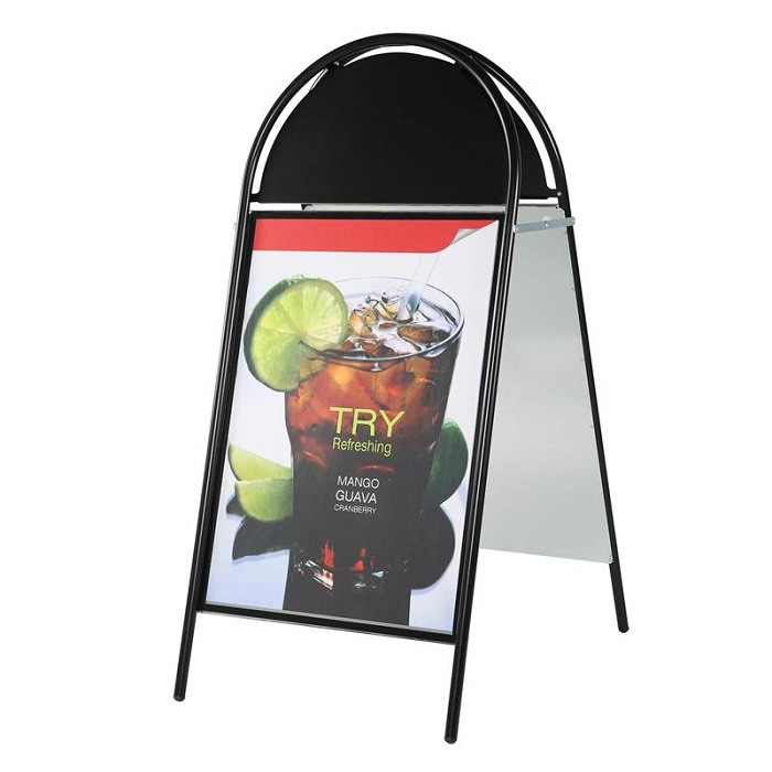 Der stabile Stahlrohr Kundenstopper mit abgerundetem Rahmen ist die ideale Lösung für auffällige Werbung im Innen- und Außenbereich.