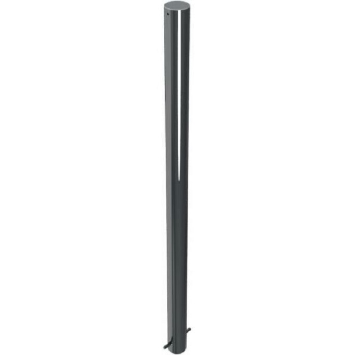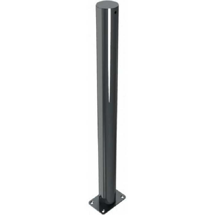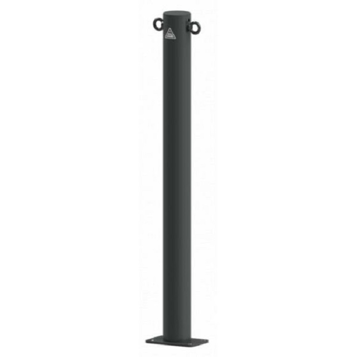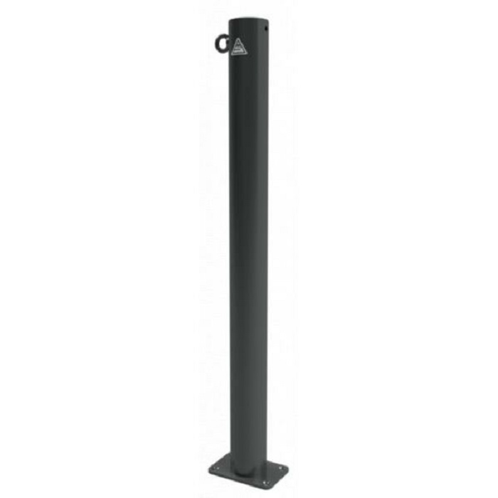 Der Absperrpfosten als Stilpfosten besteht aus Stahl Rundrohr mit Ø76 mm. Der Pfosten ist feuerverzinkt und farbbeschichtet (DB 703 - Eisenglimmer).