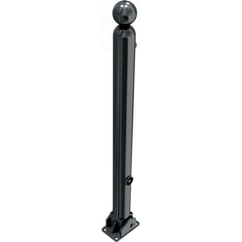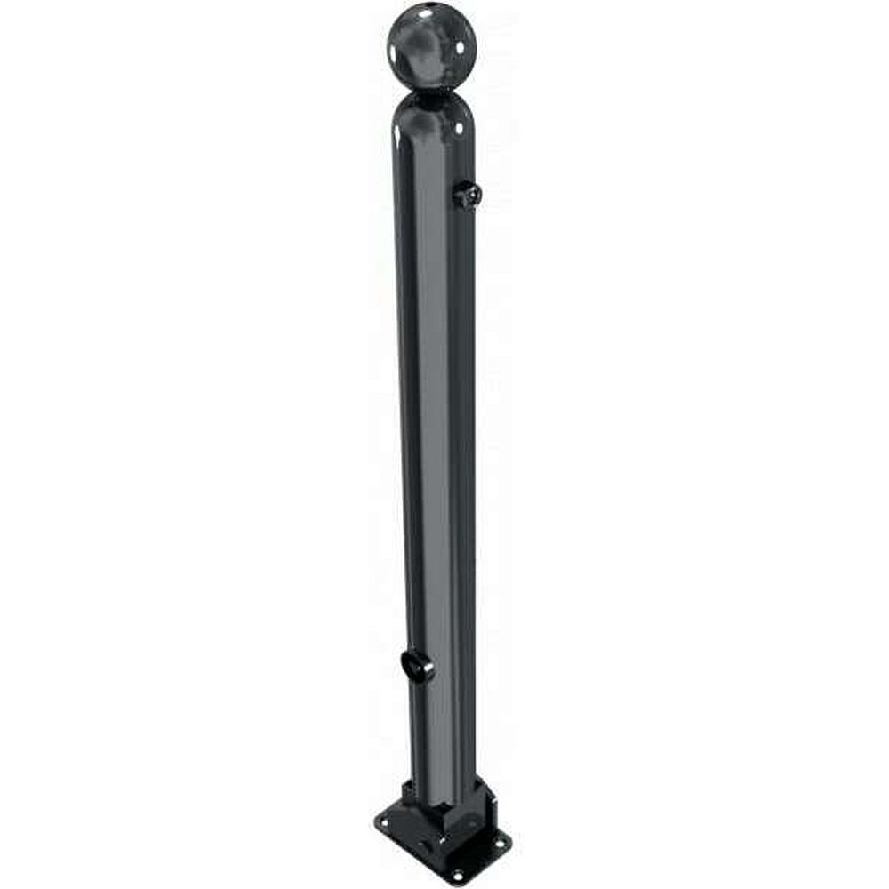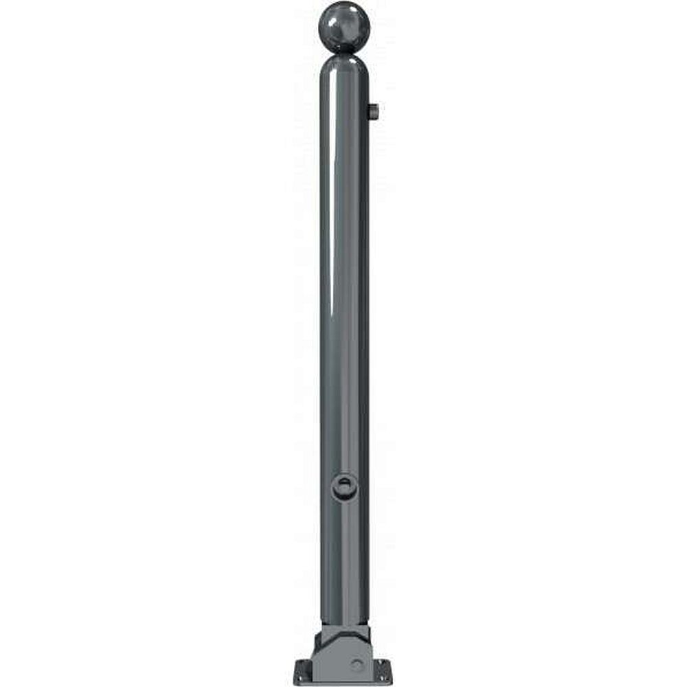 Umlegbarer Stilpoller mit Kugelkopf zum Aufdübeln mit Bodenplatte.